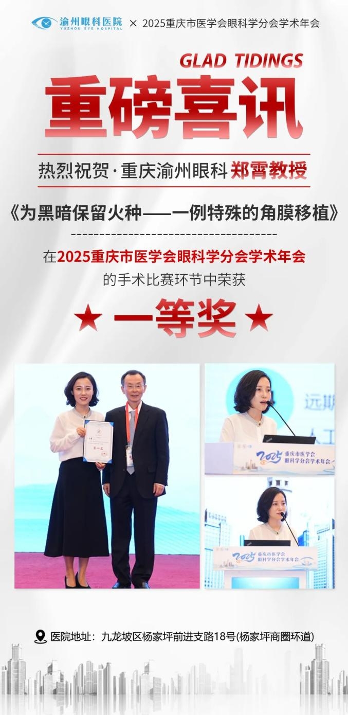 ▲渝州眼科医院郑霄教授获一等奖
