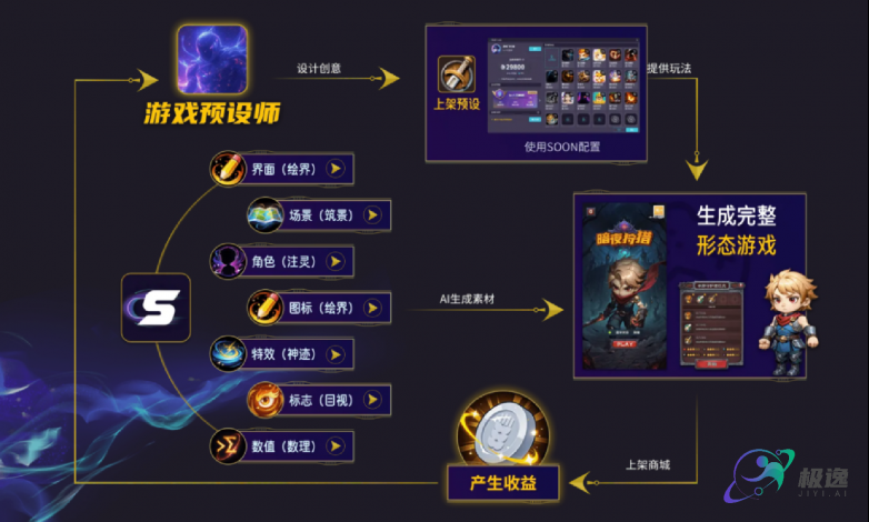 极逸人工智能的核心产品,正是AI游戏创作引擎SOON,它是AI游戏垂直领域中,集成了大模型能力的全流程开发平台,其特点与优势显著: