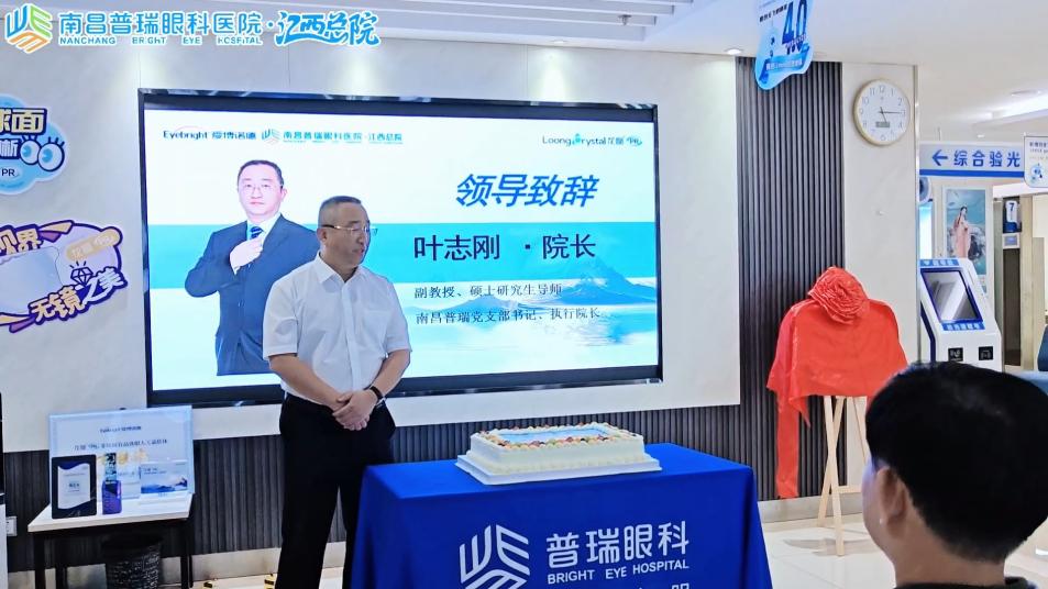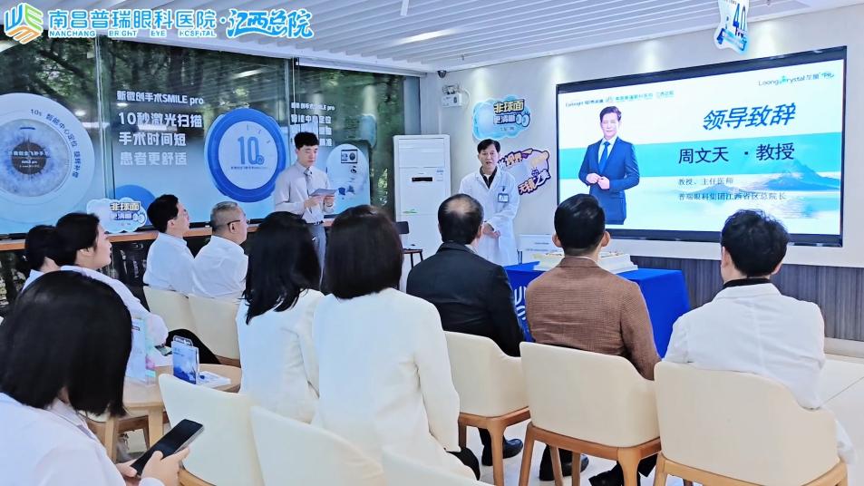 普瑞眼科集团江西省区总院长周文天教授为活动致欢迎辞,对医院取得的佳绩表示祝贺,并对未来的发展提出了展望。随后,南昌普瑞眼科医院执行院长叶志刚院长在致辞中,对医疗团队的努力和合作伙伴的支持给予了高度肯定,并寄予了殷切期望。爱博诺德公司副总经理兼全国高级市场销售总监贾宝山先生代表公司致辞,表达了对南昌普瑞眼科医院专业能力的认可及对双方深化合作的坚定信心。
