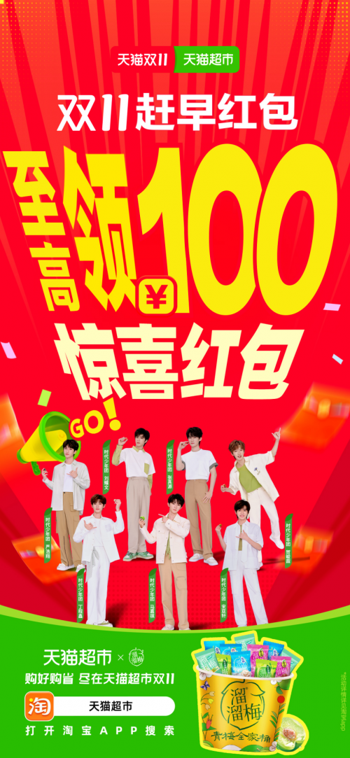 随着双十一大促拉开帷幕,零食囤货成为不少消费者的必选项。为了让大家尽情享受囤货的乐趣,天猫超市以“好吃好逛,好食价到”为主题的双十一大促已于10月20日全面启动。溜溜梅品牌全球代言人时代少年团的活动海报也同步释出,你想get爱豆同款溜溜梅青梅全家桶吗?