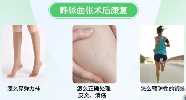 还有一个很容易被忽视的特殊原因,就是术后的康复。在这里我要着重提一下:静脉曲张的治疗,是七分手术三分养护。我们术后还有很多注意事项,比如怎么穿弹力袜、穿多长时间,怎么处理皮炎溃疡,还有预防性的锻炼等等。这些小细节,对术后恢复和腿部美观度非常重要,尤其是预防性的锻炼,对减少复发几率有很大帮助。