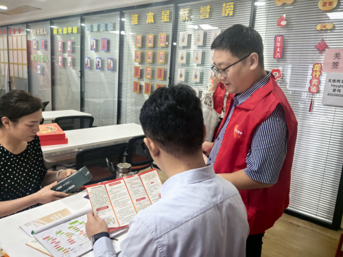 为确保活动取得成效,三方提前开展周密筹备。平安融易淮安分公司组建专业志愿者队伍,结合小微企业经营痛点和难点,精心编制包含反金融诈骗、征信维护、合理融资等内容的宣传材料,这些材料以通俗易懂的语言和生动真实的案例为载体,帮助小微企业主更好地理解和掌握金融知识。长东街道工农兵社区党委充分发挥基层治理优势,提前梳理商业大厦商户信息,规划入户路线,并协调社区资源,为活动的顺利开展提供了有力保障。闪送党员代表凭借对商圈的熟悉度,协助完成活动预热,通过线上+线下的宣传,引导商户积极参与。