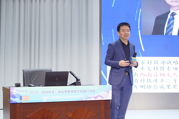 10月23日下午,2025“你好科学”讲坛暨专家院士校园行活动在成都市科技中学附属初中顺利举行。本期讲坛由成都市科学技术协会、成都市教育局主办,金牛区科学技术协会、金牛区教育局、成都市科技中学附属初中、成都市科技创新服务中心(成都市青少年科技活动中心)协办。以“坚持梦想,砥砺前行——无人驾驶技术的先行者”为主题,为同学们带来了一场别开生面的未来科技启蒙课。