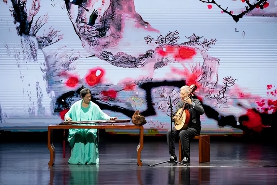 终曲《梅花三弄》由杨青老师与梁雅老师夫妇琴阮合奏,清越琴音与温润阮声交织,既赞梅花风骨,亦寓知音情深。二人返场加演的琴歌更以“声情并茂”的演绎,为整场音乐会画上余韵悠长的句点。