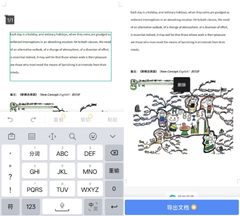 实测发现,扫描全能王还能自动识别是否为带文字的图片,让图片中的文字保持原样并无法修改