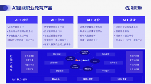 强智科技探索以AI技术重构职业教育新形态的可持续发展模式,完善“底座—模型—场景—生态”的整体布局,持续优化AI在课程建设、人才培养、产教融合、能力评价等环节的渗透方式,实现“AI技术从教育中来、又服务教育”的良性循环,推动“AI+职教”在更大范围内落地生根。