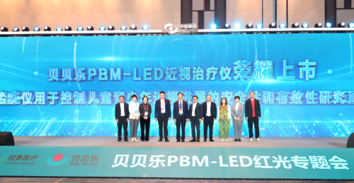 在临床研究项目启动暨新产品发布仪式环节,现场气氛热烈。瞿佳教授、陈洁教授、卓业鸿教授、刘陇黔教授、张凤霞教授、张红梅教授、张晓碧教授、武光祥教授、周谟圣先生、高特先生共同上台,按下启动按钮,正式宣告贝贝乐PBM-LED 近视治疗仪临床研究项目启动与新品发布。现场掌声雷动,标志着这款兼具安全性与有效性的近视防控新品正式进入市场推广阶段,将为广大儿童青少年带来更优质的近视防控选择。