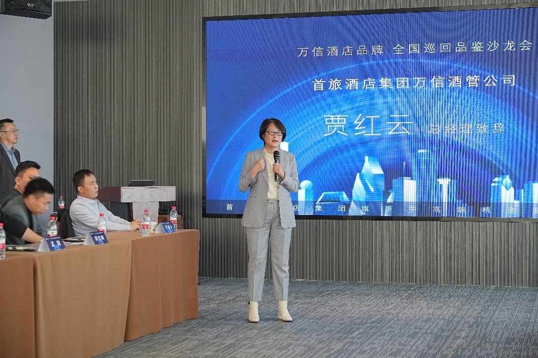 首旅酒店集团万信酒管公司总经理贾红云女士在致辞中,系统介绍了万信品牌的发展脉络与门店差异化战略。她指出,品牌独创的“三阶产品”存量改造方案,以“轻改造、重运营”为核心,整合“空间价值重构+运营效能提升+数字化赋能”三大核心势能,为合作业主提供从前期诊断到全周期运营的一站式服务,致力于实现资产价值与经营效益的双重提升。