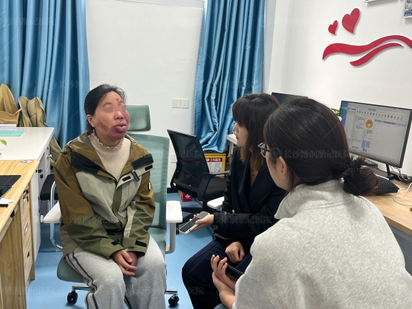 小玉自出生起便被这团“火焰”笼罩。家境贫困、医疗资源匮乏,让她失去了早期治疗的机会。随着年龄增长,胎记的颜色愈发加深,范围不断扩大,下唇明显肿胀,面部皮肤增厚,出现结节。“我没工作,在家里常被嫌弃,也没人疼爱。好闺蜜曾带我去当地治疗,但没什么效果,那时候真的很绝望。”小玉回忆道。一次偶然,她在网上看到长沙博润胎记医院的公益救助活动,心中重新燃起希望。为了抓住这次机会,她向亲戚借了4000元,毅然踏上了长沙求医之路。