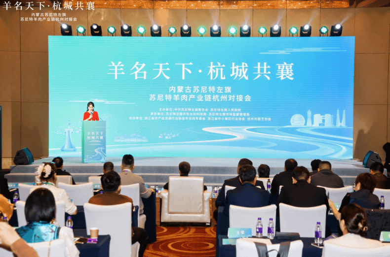 苏尼特左旗旗委副书记、政府旗长双宝,旗政府副旗长包春生,旗农牧水利科技局相关负责人及部分苏尼特左旗企业代表出席了本次对接会;浙江省农业厅、省畜牧农机发展中心、杭州市商务局、市农业局等相关领导出席活动,浙江省农产品流通行业协会牛羊肉专委会、浙江省中小餐饮行业协会、杭州市厨艺协会以及中国500强企业明海亮集团明康汇等七十余家企业代表参加对接会,共同见证这场“草原珍馐”与“江南餐桌”的深度对话。