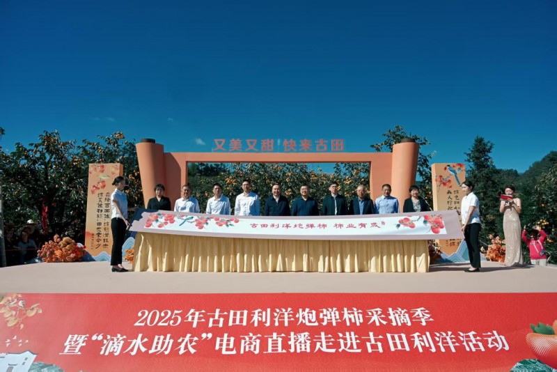 10月25日,由福建省乡村振兴促进会、福建省乡村振兴基金会、古田县委县政府指导,古田县城东街道主办,福建日报新福建乡村振兴频道和滴水缘杂志支持的“2025年古田利洋炮弹柿采摘季暨‘滴水助农’电商直播走进利洋活动”在利洋村正式启动。此次活动旨在深化区域协调与城乡融合,巩固拓展特色富民产业成果,推动“产业、文旅、生态”三位一体深度融合,为乡村振兴注入共富新动能。