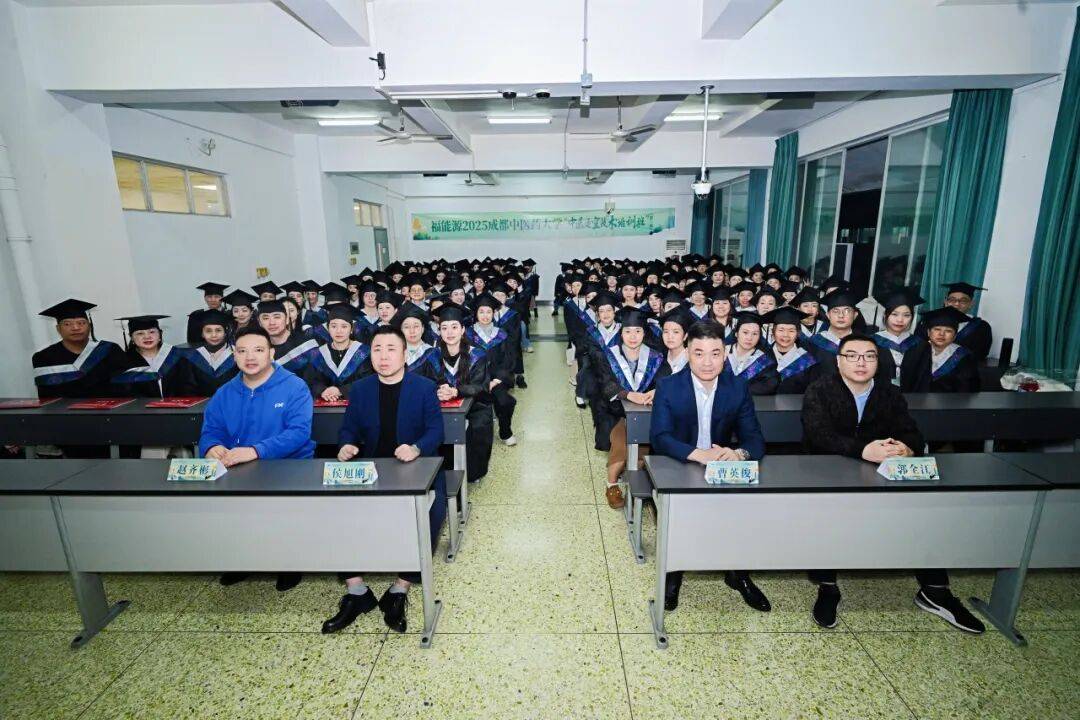 在毕业典礼上,四川福能源生物科技有限公司副总裁、新零售总经理曹英俊先生登台致辞。他首先向成都中医药大学致以谢意,感谢校方提供专业的教学场所与学术支持。随后向顺利结业的全体学员致以诚挚祝贺。致辞中,曹总代表公司向学员们赠送了纪念礼品,并寄语学员,希望大家将所学的专业知识与实操手法学以致用,以福能源“新中医进万家”公益行动为依托,肩负起传承中医药技术的责任。曹总表示希望大家聚是一团火,散是满天星”,以星星之火燎原之势,将中医药智慧与健康理念传递至千家万户,让中医药文化在新时代持续传承发扬。