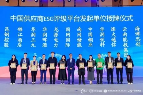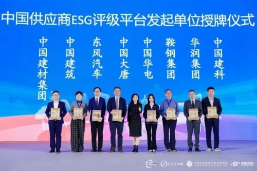 在中国供应商ESG评级平台发起单位授牌环节,鞍钢集团、东方电气、烽火通信、平高电气、华润建材科技、华润健康、华润电力、华润饮料、华润三九、兰石重装、卫岗乳业、爱联科技、四川长虹、首钢集团、天合光能和云南能投集团15家企业获授。