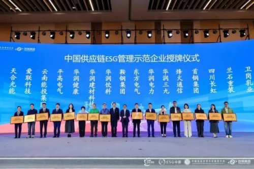 在中国供应链ESG管理示范企业授牌环节,中国大唐、中国华电、东风汽车、鞍钢集团、中国建筑、华润集团、中国建材集团、中国建科、电网国际、南网储能、龙源电力、中国铜业、华润啤酒、华润饮料、华润三九、烽火通信、锦江酒店、云南能投集团、昆钢控股、海博思创20家企业获授。