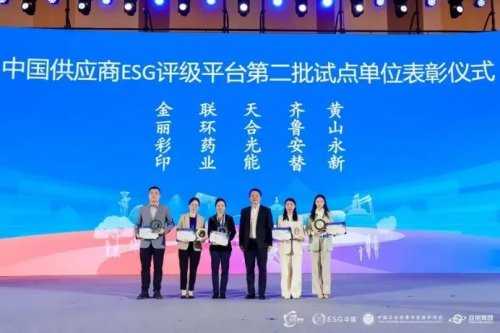 在中国供应商ESG评级平台第二批试点单位表彰环节,天合光能、齐鲁安替、联环药业、黄山永新、金丽彩印5家企业获授。