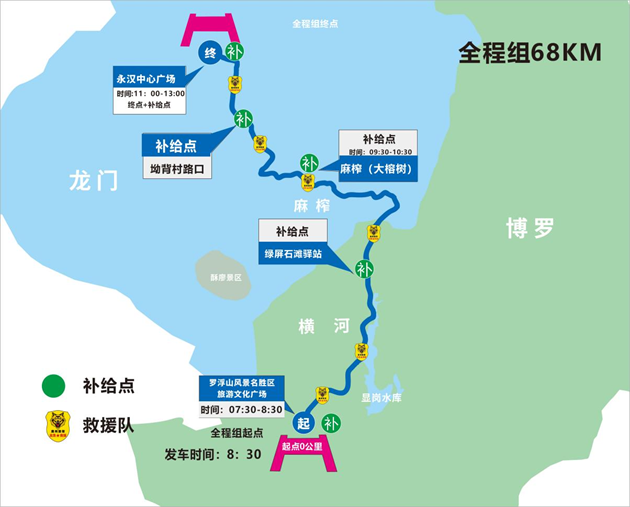 骑行日(10月31日):8:15启动仪式,8:30正式发车,全程组骑行路线总长68公里,从罗浮山风景名胜区旅游文化广场出发,横穿横河镇、麻榨镇等特色村镇,最终抵达龙门县永汉中心广场。