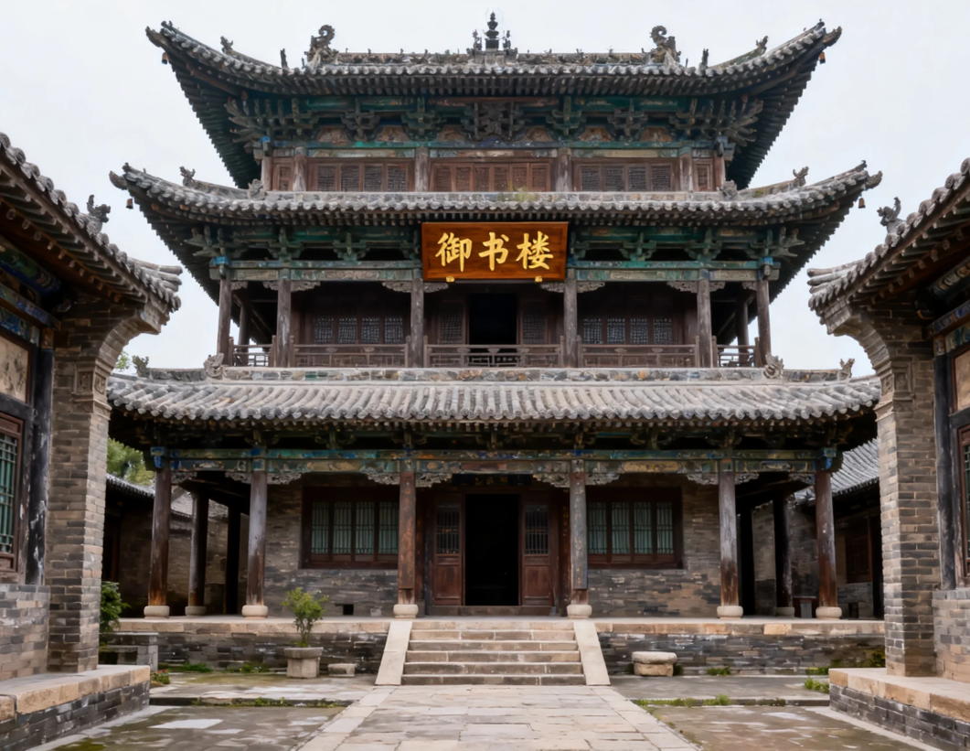 吴垣携御书回归故里,欲传之后世,使千载生辉,乃兴土木,建楼三楹,将御书墨迹勒石一方,嵌于楼上北墙正中,取名“御书楼”,至今犹存
