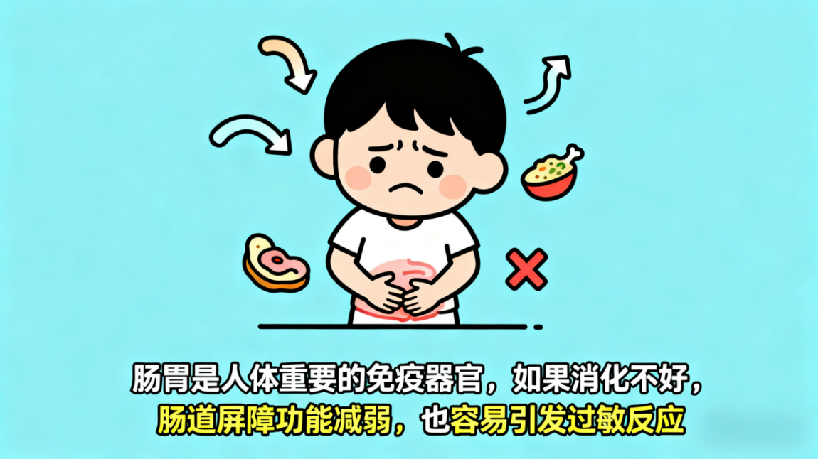 你可能没想到,孩子的肠胃健康和过敏有很大关系。肠胃是人体重要的免疫器官,如果消化不好,肠道屏障功能减弱,也容易引发过敏反应。