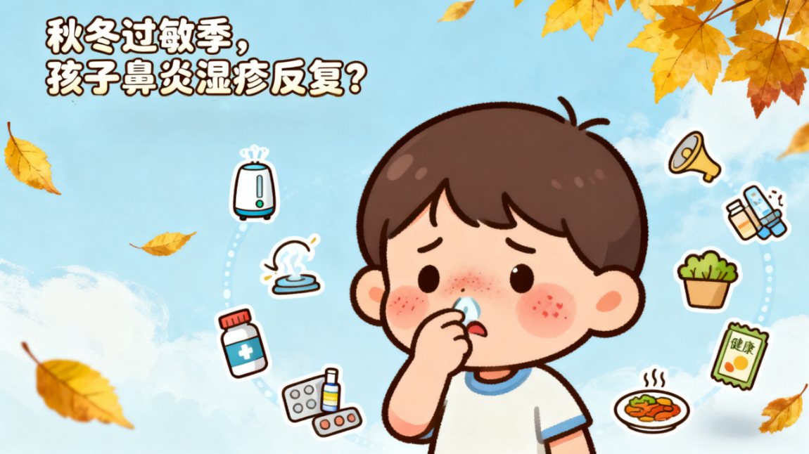 这几天天气转凉,孩子早起连打十几个喷嚏,胳膊上的湿疹又冒出来了,晚上因为鼻塞睡不好……为什么到了秋冬季,这些过敏问题就更严重了呢?