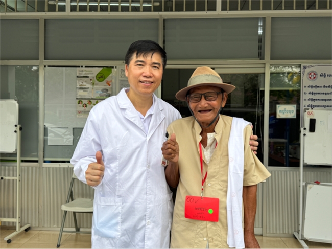 还有 70 岁的华侨万娜,她爸爸是中国人,妈妈是柬埔寨人,手术时用流利的中文跟我们打招呼,说 “爸爸教我不能忘中国根”。术后她视力恢复到 0.8,紧紧握着我的手说 “祝愿祖国永远繁荣昌盛”。那一刻,我觉得我们做的不只是手术,更是在架起中柬友谊的小桥梁。后来磅士卑省卫生部长专门来看我们,说 “中国医疗队带来的不仅是光明,还有温暖”,我特别自豪。
