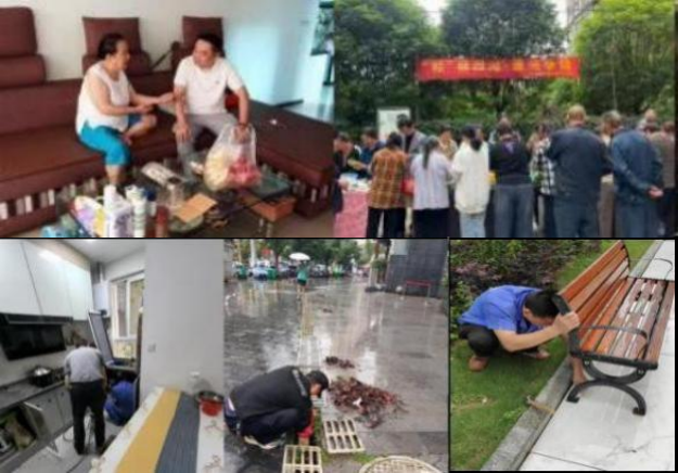 2025年8月11日晚,重庆遭遇特大暴雨袭击,荣昌区妇幼保健院地下车库水位持续上涨,工程人员在每日例行巡查时发现车库及库房被淹。项目保洁与工程人员迅速响应,排除积水;15分钟内全员到岗,现场主管窦主管带领团队用防汛沙袋构筑第一道防线,工程主管胡师傅徒手清理被树叶堵塞的排水口。"当时积水已经没过脚踝,工作人员轮流作业 , 确保医疗设备和车辆安全。"胡师傅的橡胶手套磨破了三个手指,直到次日清晨水位退去才发现手指被水泡得发白。这场与暴雨的赛跑,只是荣合物业日常应急服务的缩影。