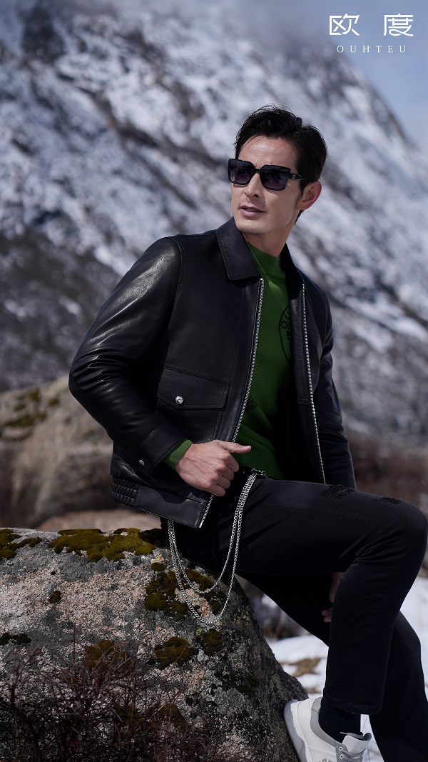 皮衣,曾是硬朗与不羁的符号。但欧度此番,却以其为画布,上演了一场“柔情革命”。一件剪裁利落的经典皮衣,内在的玄机在于那件嫩绿色羊毛衫。这一抹跳脱的色彩,瞬间瓦解了皮革的冷峻,如同秋日林中穿透薄雾的一缕晨光,充满生机。下身搭配的黑色休闲牛仔裤,则巧妙平衡了上下量感,确保了整体的松弛风度。