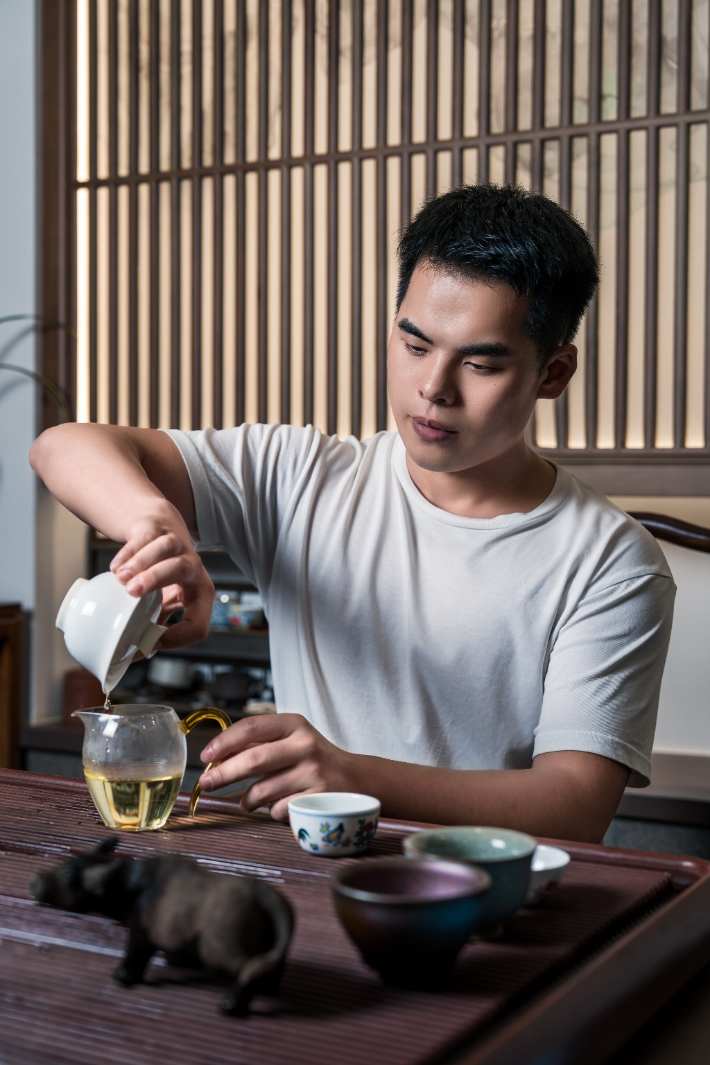 杨景行,男,1992年生,杨氏老茶第三代传人。家族自其祖父起立下祖训:“不制新茶,不卖陈期十年以下之茶”,是全球茶叶界极为罕有的、专注于老茶领域的世家。22岁正式接班,十年间深耕老茶品鉴与仓储体系,因其家族茶品仓储均超十年,且长期品饮,其外貌与年龄形成巨大反差,被誉为“茶龄三十年,面貌如青年”的老茶守护者。