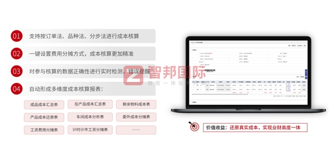 此外,对于生产环节的成本核算,智邦一体化ERP能够自动采集生产过程中的原材料消耗、人工成本、制造费用等数据,并按照预设的成本核算方法(如品种法、分批法、分步法)自动计算产品成本,生成成本报表。这种自动化的成本核算方式,不仅大幅提升了核算效率,还确保了成本数据的准确性与及时性,为企业成本控制提供了可靠依据。