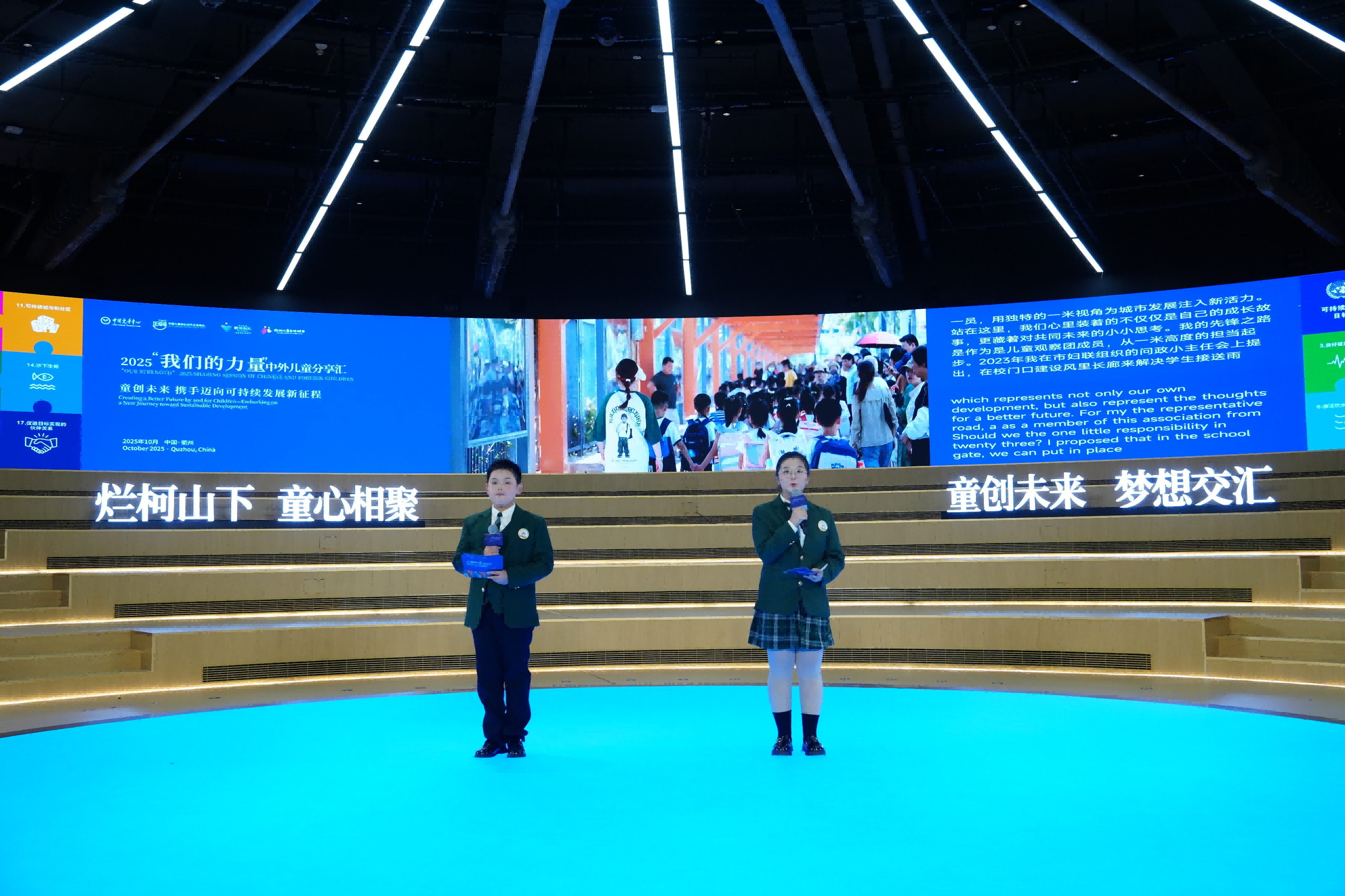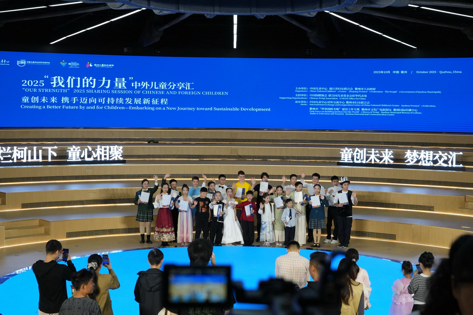 10月25日,由中国儿童中心、浙江省妇女联合会、衢州市人民政府联合主办的“我们的力量”中外儿童分享汇在衢州成功举行。来自中国、美国、加拿大、澳大利亚、捷克、智利、克罗地亚、吉尔吉斯斯坦、新加坡、泰国等国家和地区的百余名儿童代表,围绕文化、环保、科技等主题进行交流分享,共同向世界发出《童创未来,携手迈向可持续发展新征程》倡议,展现了少年儿童对全球可持续发展目标的深刻思考与积极行动。
