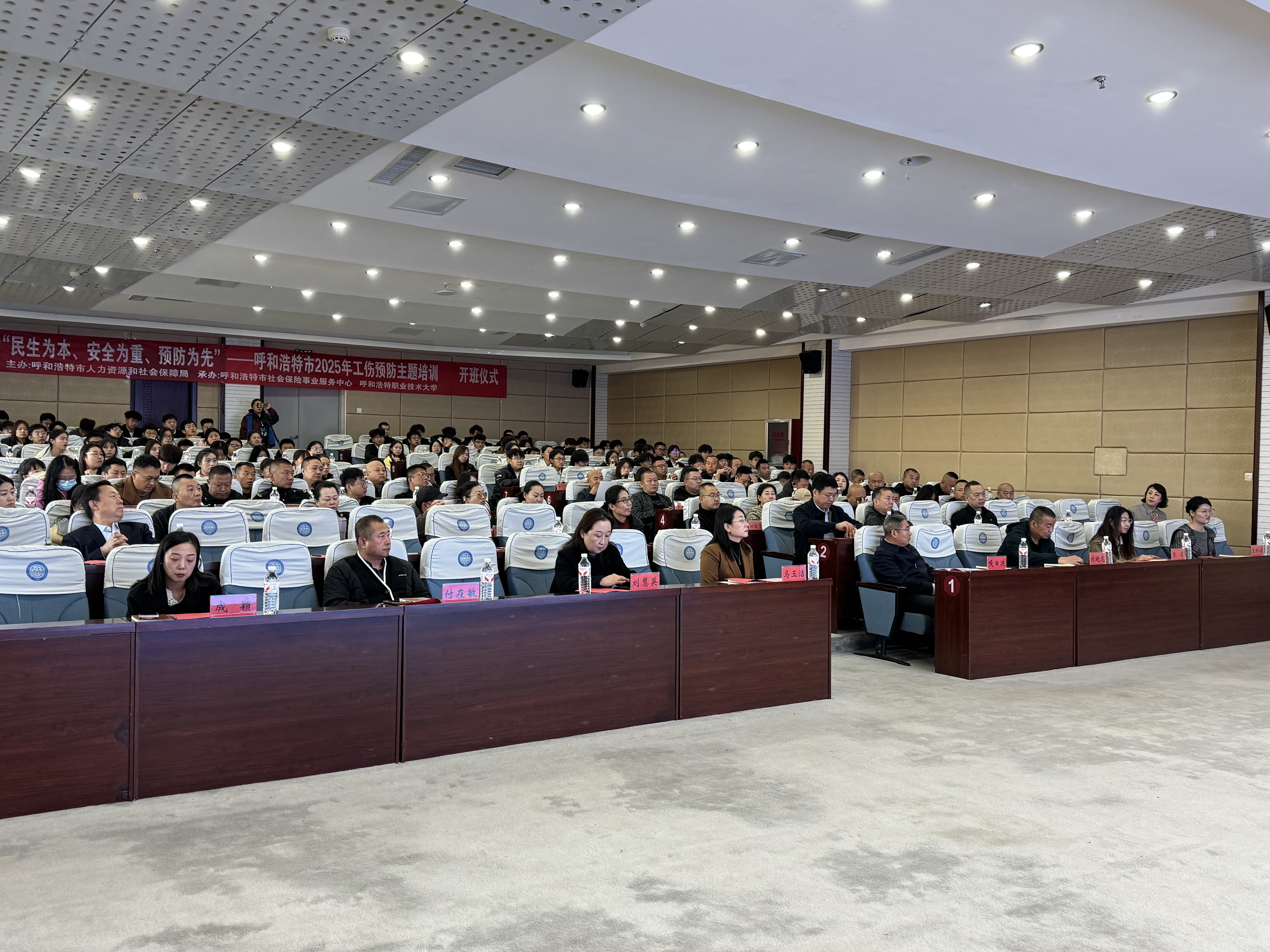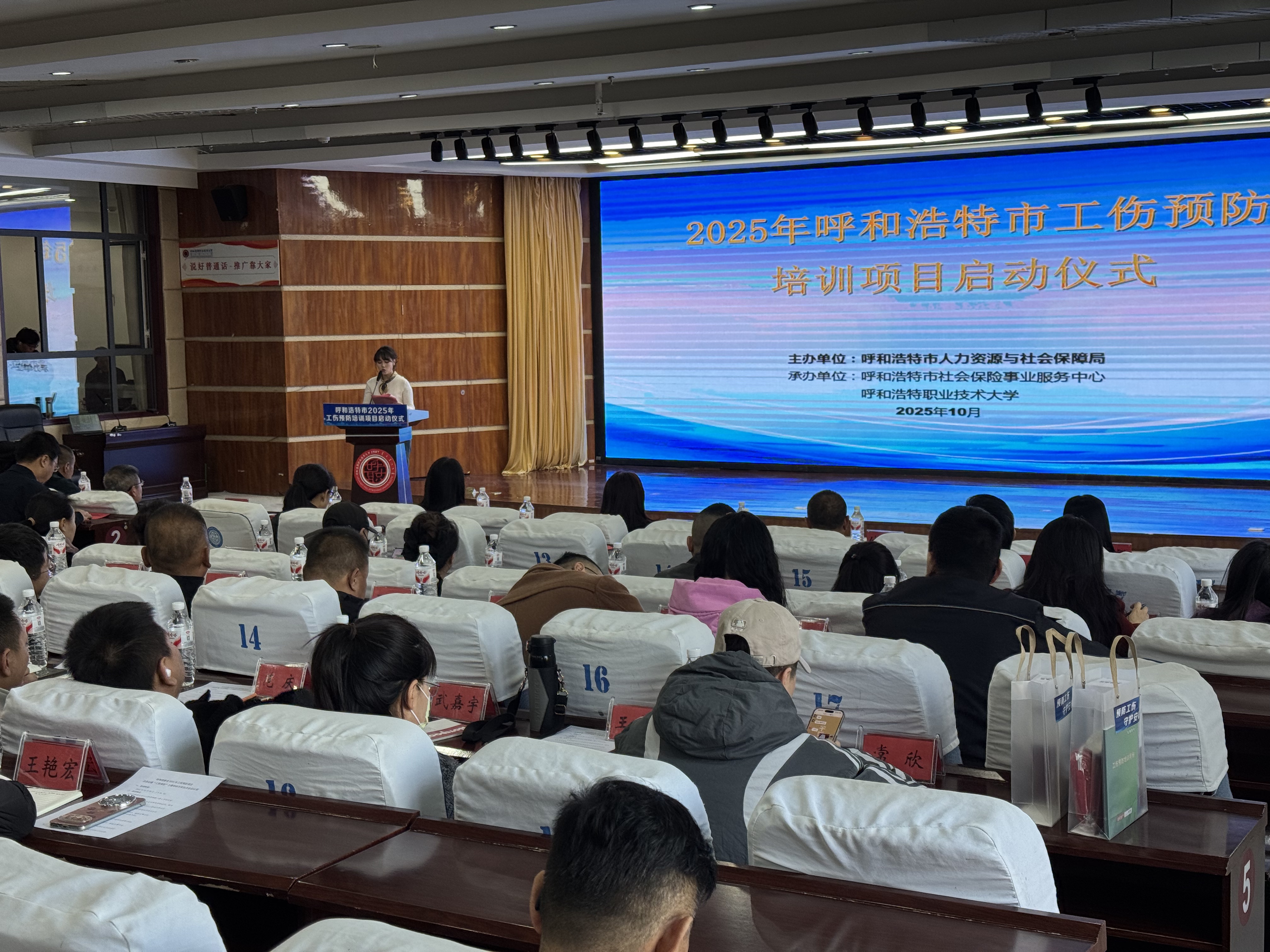 10月28日上午,“呼和浩特市2025年工伤预防项目”启动仪式在呼和浩特职业技术大学隆重举行。该项目由呼和浩特市人力资源和社会保障局(以下简称“市人社局”)主办,呼和浩特市社会保险事业服务中心与呼和浩特职业技术大学联合承办。市人社局、市工伤预防联席会议成员单位,项目实施单位及行业专家、交通运输行业企业职工等150余人参加。