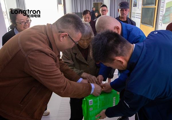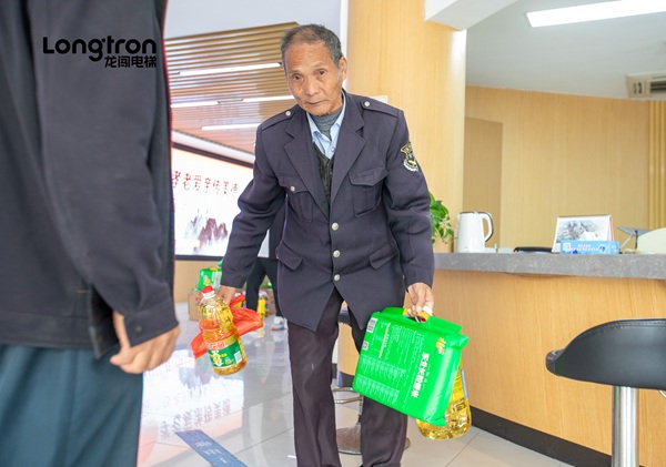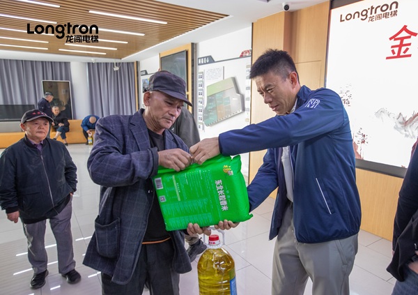 今天,龙闯电梯与街道工作人员一起,走进社区低保老人家庭,为他们送上精心准备的生活慰问品,并致以节日的问候与关怀。