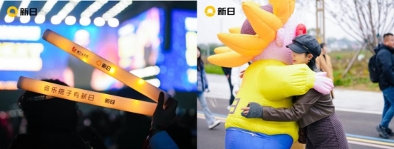 此外,新日品牌展区发放的“显眼包”“荧光棒” 等定制萌趣周边,不仅提升活动参与感,更让品牌标识随用户移动,成为音乐节现场的“流动广告”。这些细节巧思设计,让品牌展区脱离“卖货感”,变成年轻人愿意停留、愿意交流的社交空间:有人和车型搭配穿搭拍照,甚至自发组成“打卡小组”分享小红书种草攻略,使得品牌变成年轻人音乐节社交的“重度参与者”。