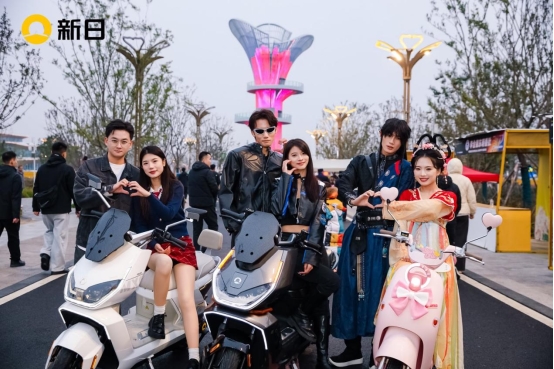 在音乐节这类潮流聚集地,单纯的陈列产品很难和Z世代玩到一起。而新日成功化身音乐节搭子,“梦想7”的科技感、“梦想6”的潮流范、“甜心”的可爱风,多款爆品车型设计精准覆盖不同审美偏好的年轻群体,成为音乐节亮眼时尚单品,活动现场吸引了不少汉服达人、潮流党与机车爱好者合影打卡,妥妥刷屏存在感。