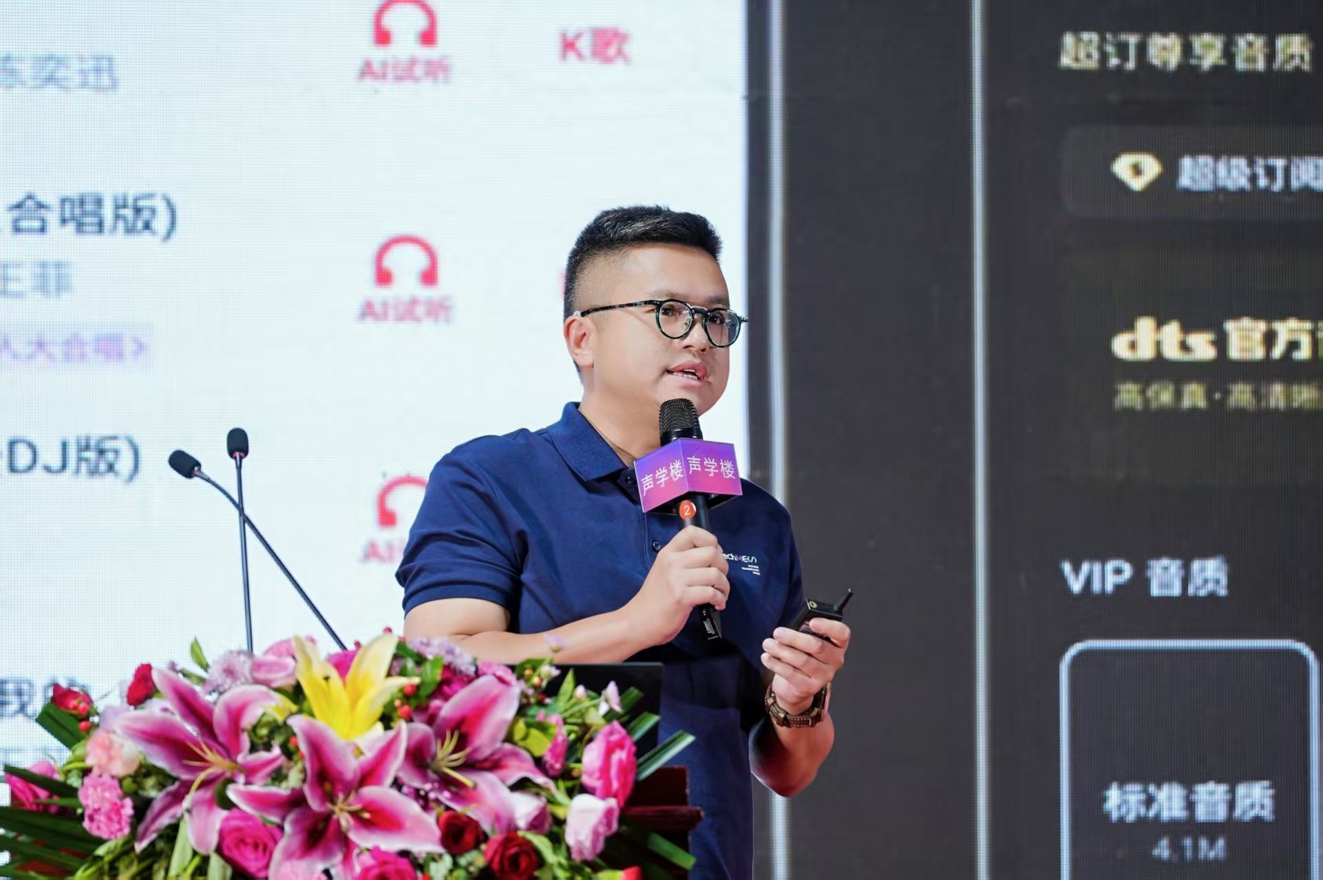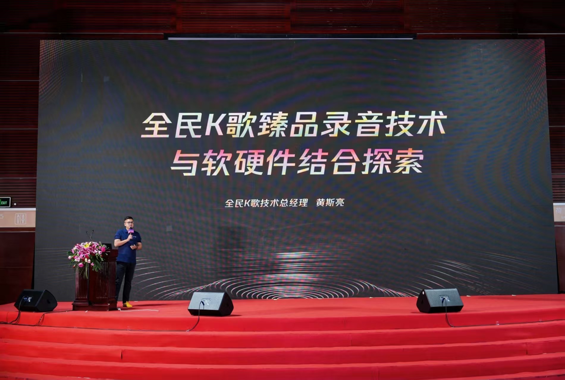 在会上,黄斯亮以“全民K歌臻品录音技术与软硬件结合探索”为主题发表演讲,分享了全民K歌在智能音频技术领域的最新发展成果。黄斯亮指出,作为在线K歌行业的引领者,全民K歌拥有业界领先的录唱“黑科技”,为用户的录唱体验提供了全方位、一站式保驾护航。从极致还原音效的海量正品伴奏,到高保真、低延迟、强降噪的录音技术,再到千人千面的专业调音、智能修音,甚至借助“AI歌声”功能,用户还能打造专属AI分身,轻松挑战高难度歌曲……全民K歌APP将先进的声音技术深度嵌入,形成了一条完整的智能化录唱流程,确保每一位用户都能获得专业级、个性化、沉浸式的K歌体验。