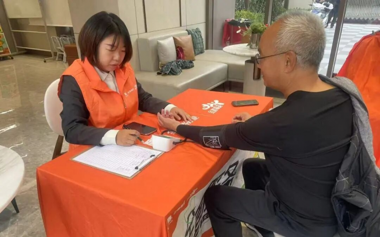 义诊摊位前,老人们自觉排起队伍,管家和医护人员端坐桌前,耐心地为每位老人测量血压,测量完毕后,还会细心地在记录本上标注数据,并结合老人们的身体状态,轻声讲解日常保健要点,从饮食搭配到作息规律,条理清晰且充满关怀,让老人们在等待中也能感受到贴心指引。