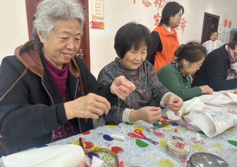 这边登高队伍欢声笑语,那边活动室里的手工包制作也热闹非凡!五彩的布料、精致的针线整齐摆放,物业小姐姐手把手教大家缝制技巧。叔叔阿姨们瞬间化身手工达人,穿针引线、裁剪缝合,认真的样子超可爱~ 有人选了古典的山水图案,有人偏爱简约的纯色款,大家互相交流心得,时不时传来阵阵笑声。不一会儿,一个个独一无二的手工包就完成啦!拿着自己亲手做的包包,阿姨们开心得合不拢嘴:“这包太有意义了,以后买菜逛街都拎着它!”一针一线,缝进去的是心意,拎起来的是快乐~