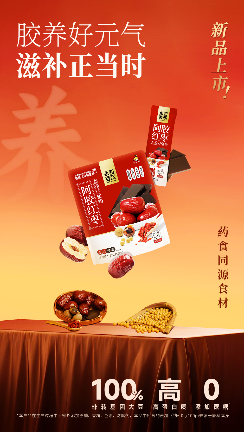 秋风渐起,寒意微醺,正是人体收敛阳气、贮藏精华的黄金时节。自古以来,中国人讲究“秋冬养阴”,热衷于通过日常食补为身体积蓄能量,抵御寒冷,好以元气满满的状态迎接降温。多年来深耕健康饮食行业的国民品牌永和豆浆,深谙食补之道,应季推出全新力作——阿胶红枣食养豆浆粉。这杯配方创新升级的豆浆,有望在今秋掀起一场融合东方食养智慧与现代营养需求的轻养生热潮,为更多人的健康生活带来温暖与活力。