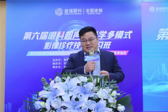 活动伊始,天津普瑞眼科医院执行院长范国保在揭牌仪式上致辞。他回顾了天津普瑞眼科医院成立以来的发展历程,并对社会各界的长期支持表示感谢。院长范国保在致辞中强调:"眼底疾病全病程管理中心的成立,致力于整合多模式影像技术,构建从筛查、诊断、治疗到随访的一体化管理体系,为患者提供更精准、系统、连续的医疗服务。这不仅是我们在诊疗模式上的一次积极探索,更是推动眼底疾病管理迈向标准化、规范化和智能化的重要一步。"他表示,在集团成立二十周年的新起点上,这一创新举措标志着普瑞眼科在提升医疗服务质量方面迈出了坚实步伐。