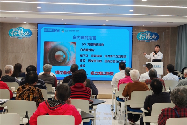 眼健康科普讲座中,黎海平院长结合案例讲解白内障、干眼症、糖网等中老年常见眼病的发病原因、早期症状及预防方法,同时分享日常护眼技巧。用通俗易懂的语言传递专业知识,有效提升现场中老年朋友的眼健康自我管理意识。