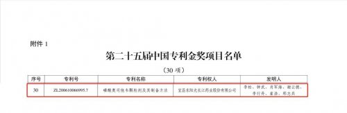 东阳光药的可威(奥司他韦)在第十四届中国国际专利技术与产品交易会上,凭借“磷酸奥司他韦颗粒剂及其制备方法”(专利号 ZL200610066995.7)获得第25届中国专利金奖。该奖项认可了可威(奥司他韦)作为神经氨酸酶抑制剂类药物的技术创新,特别是在儿童用药剂型方面的突破,该专利是当届生物医药领域五件金奖中唯一针对儿童开发的药物专利。