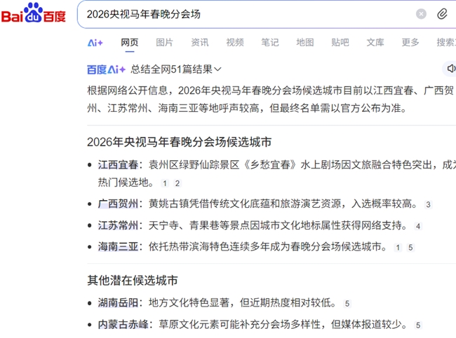 江苏常州、江西宜春入选2026央视马年春晚分会场网络支持率领先