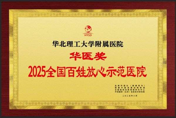 近日,由国家卫生健康委指导、品牌时报社(健康周刊)主办的“华医奖”全国医疗行业大型公益评选活动中,华北理工大学附属医院从全国众多参评医疗机构中脱颖而出,荣获“华医奖·2025全国百姓放心示范医院”称号。该奖项是对医院医疗质量、服务及管理水平的高度认可。