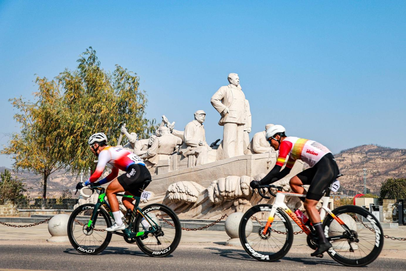 收官之日,吴堡段83.5公里赛道成为各车队战术博弈的终极战场。赛道以起伏路为主,设有两个四级爬坡点和一个冲刺点,从吴堡县龙头广场延伸至佳县白云山天一广场。比赛中,主车群在千年石城段展开激烈争夺,各车队轮番上演试探、突围、追击的战术对决。与此同时,大众组选手在33.63公里的赛道上尽情挥洒汗水,终点设在具有重要历史意义的毛主席东渡纪念地。