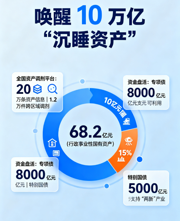 今年上线的全国资产调剂共享平台已成为盘活资产的重要载体,目前已汇聚 20 万条资产信息,推动跨区域调剂资产超 1.2 万件。中国科学院 4 台科研仪器无偿划转至皖西学院,直接为高校节约资金 280 万元;安徽、河北等地将闲置办公楼改造为科创孵化器,已培育初创企业超 200 家。县域层面的实践同样亮眼,望江县通过建立 “一物一卡” 管理体系、强化公物仓建设,盘活闲置房屋 8227 平方米、办公设备 671 台(套),节约财政资金 1130 万元。资金端盘活同步推进,8000 亿元专项债券用于置换相关债务,超长期特别国债中 5000 亿元定向支持 “两新” 产业,有效推动存量资本流向实体经济。