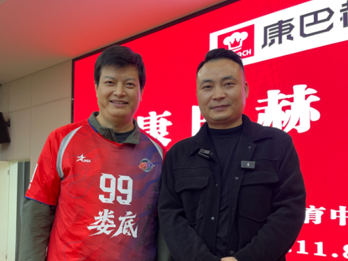 11月3日,在娄底市文旅广体局组织的湘超联赛娄底赛区工作会议现场,两位娄底籍企业家——康巴赫执行董事周和平与嘉嘉有品牌负责人李泽林从线上的隔空喊话终于走到线下的同框亮相。镜头前,背景板上湘超联赛“康巴赫之夜”康巴赫之夜的标志格外醒目。
