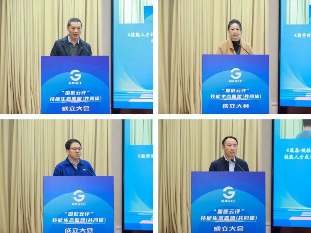 会上,多位行业专家和企业、院校代表围绕“国家技能人才评价制度改革趋势与生态化发展”“数字时代下技能评价的挑战与机遇”“做新时代技能工匠 弘扬人民兵工精神”“院校端在技能评价生态中的角色与创新实践”“共建·共享·共赢:构建技能评价新生态”等专题进行深入研讨与精彩分享。大会举行了联盟成立仪式,共同宣读由国家人社部发布的《高质量开展职业技能等级认定——郑州倡议》,为理事长、副理事长单位授牌,发布“国匠云评”技能生态联盟(共同体)十大行动。