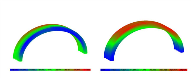 ▲ 8kPa气压及自重作用下气肋拱形态