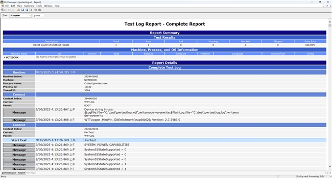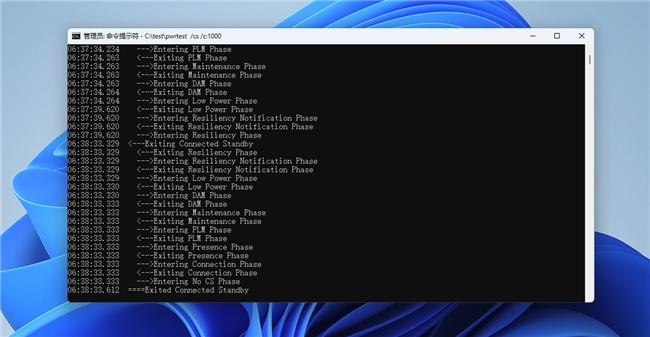 这个测试在支持新式待机(Modern Standby)的笔记本平台上进行,目的是检验SSD在移动平台上的节能兼容性。测试通过PwrTest进行,它是包含在Windows Drive Kit中的一个电源管理测试程序,可供开发人员和系统集成商使用的测试工具。忆联AE531 1TB作为测试平台的系统盘,测试1000次新式待机循环。