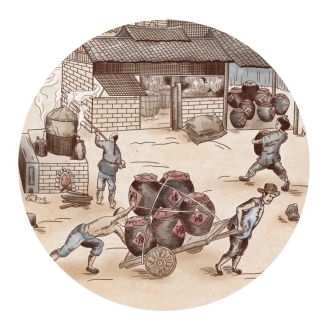 4.明清时期:随着蒸馏设备的发明和完善,白酒的生产工艺发生革命性变化,传统的槽流法逐步被蒸馏法取代,酿酒进入一个全新的时代。现代白酒生产,发酵、蒸馏是其关键技术,其中蒸馏是一种分离技术,可以将不同组分分离出来,使其成分变得更加纯粹,酒的品质更加优异,口感更为香醇可囗。技术的进步必然带来市场的进步和生产的进步,《杏花村汾酒厂碑记》中有载:清代中叶酒坊增至220余所。1875年,汾阳商人尹贞松兄弟开办了“上述”酒坊“五誉清”酒坊,在这期间将杏花村酿酒工艺传到了贵州茅台镇和陕西凤翔县等地。同年,汾阳绅士王舒协在杏花村独资开办了“宝泉益”酒坊。王舒协经营有方,启用能人,改革工艺,酒坊发展很快,名气越来越大,产品畅销全国各地。借此势头,杏花村其它酒坊也得到了快速发展,形成了规模效应和品牌优势,产品供不应求,蜚声宇内。其中五誉清酒以“水必得其甘,曲必得其时,粮必得其实,器必得其洁,火必得其缓”之五项美誉一枝独秀。