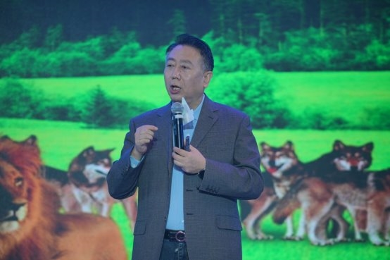 (豫之星·农资大零售开创者——李国建先生,在会上为全国零售商分享战略)